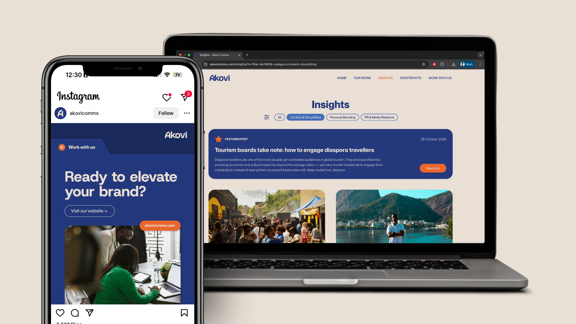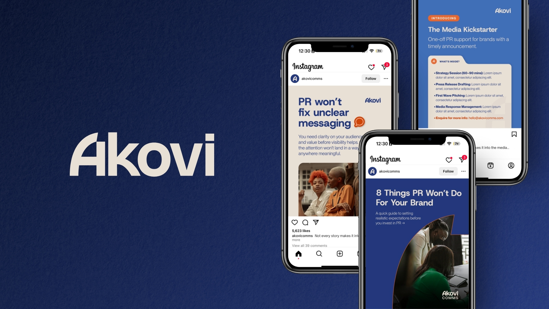 With their refreshed identity, Akovi now has the visual presence to match their ambition. The brand identity & website communicates authority without being stiff, and creativity without being performative—helping them stand out as a trusted PR partner for changemakers who want more than hype.